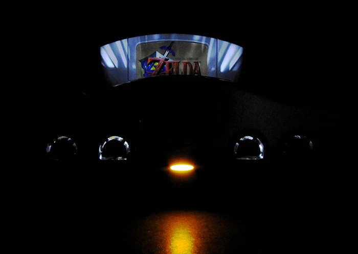 Atualização: recomendo que não tente transformar seu 64 numa usina de LEDs, porque isso pode fazê-lo parar de funcionar dependendo de onde forem ligados. Por exemplo: num outro aparelho que personalizei, tentei tirar a voltagem para os LEDs superiores direto do LED de power, mas cinco foram o bastante pro videogame não dar mais sinal.