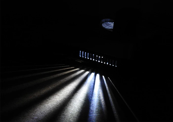 Aquela luz saindo pelas laterais são dois LEDs, um apontado para cada lado, ligados na mesma fiação dos LEDs centrais. Posicione-os apontados para a ventilação, mas não encoste muito. Quanto mais afastados, maior o efeito de "raio solar" pela grade. Prenda com cola quente onde achar melhor.